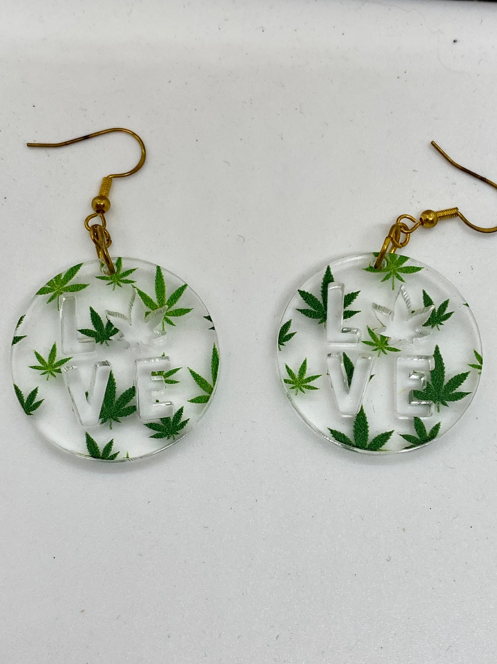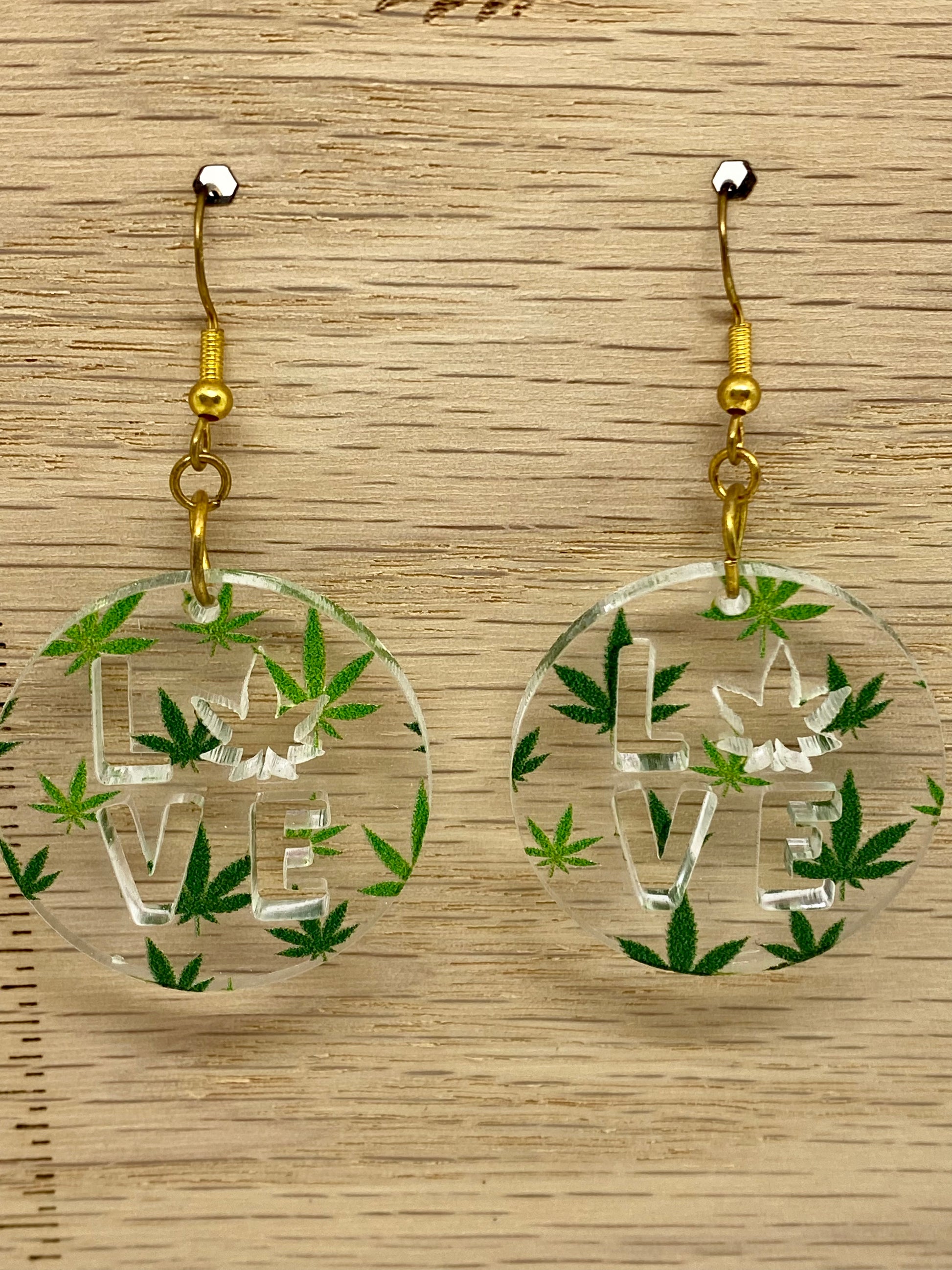 Cannabis round LOVE cut out acrylic earrings