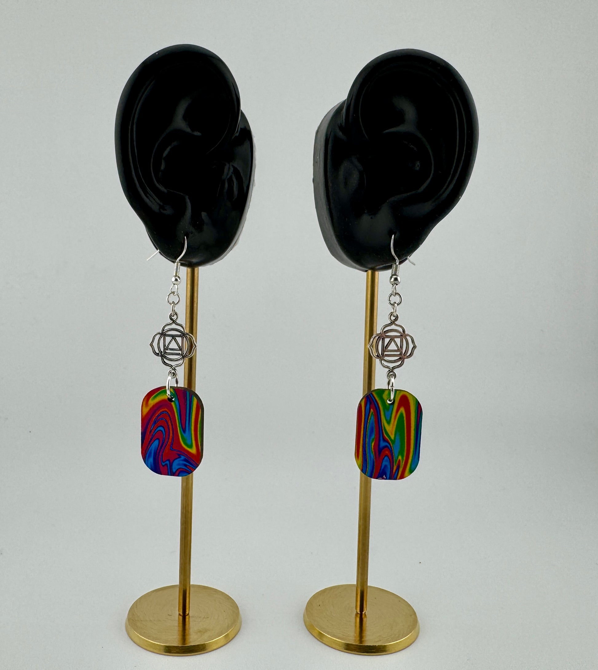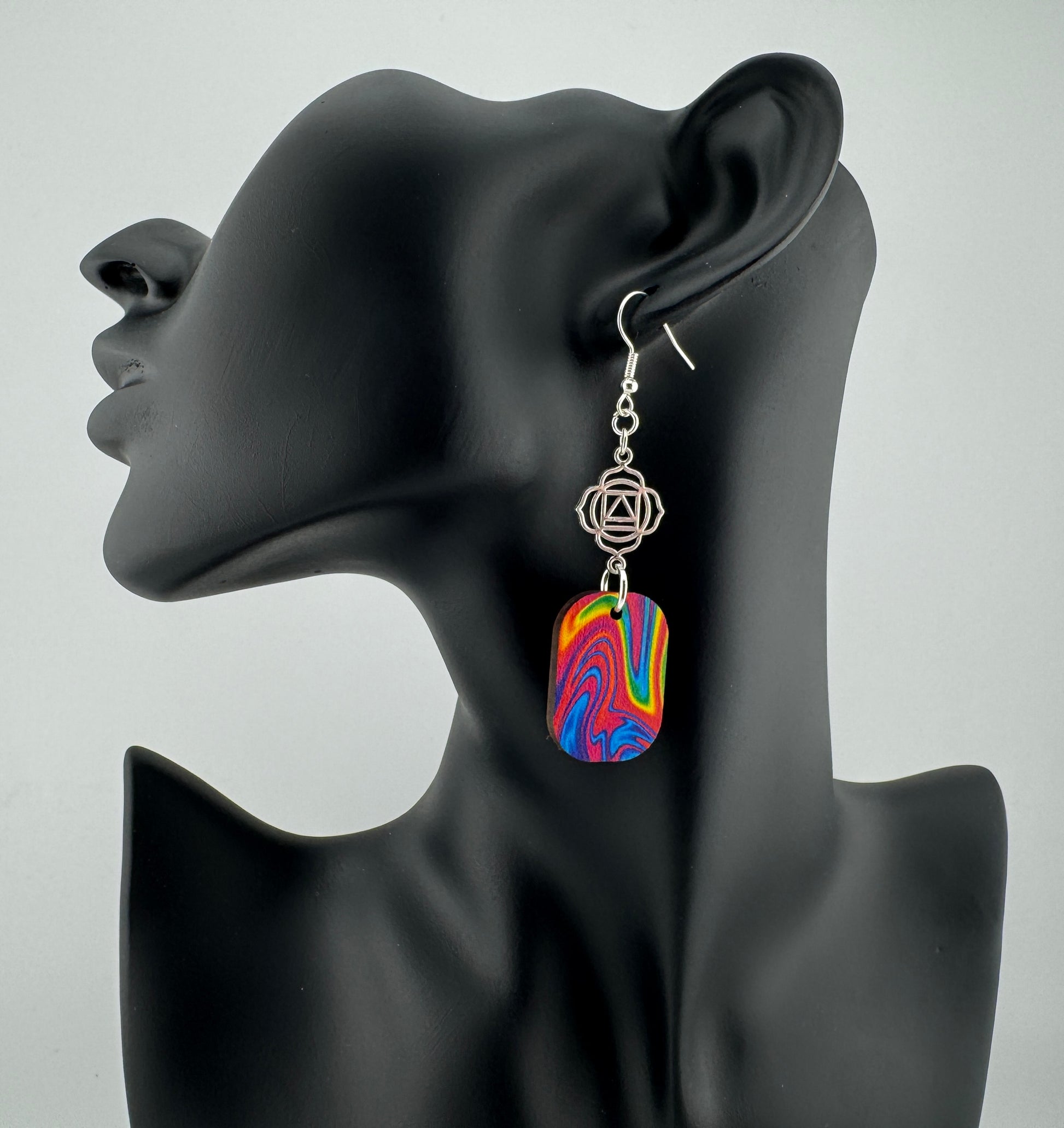 Prism Energy Earrings – UV Printed Wood with Silver Chakra Symbol