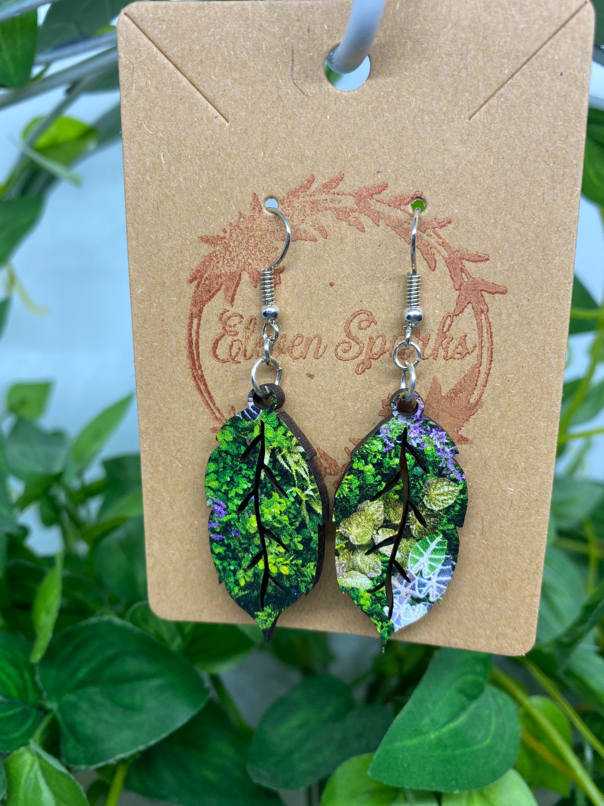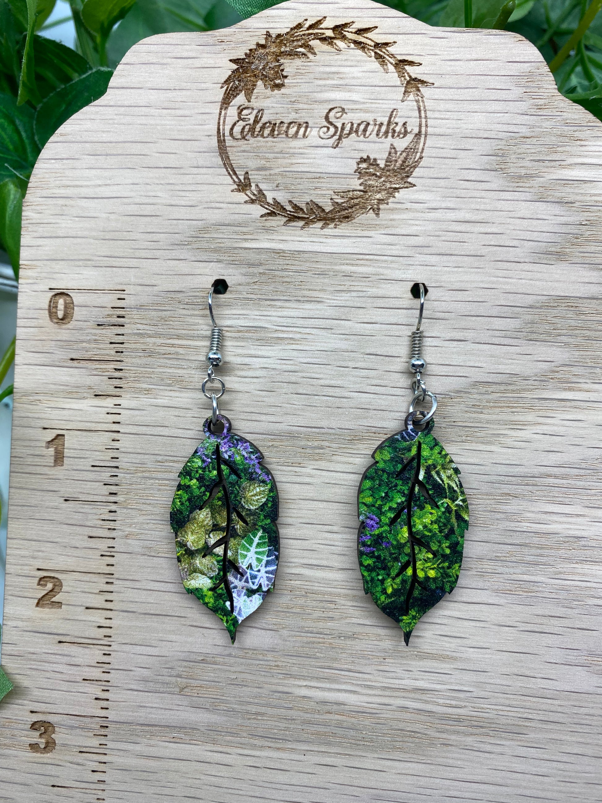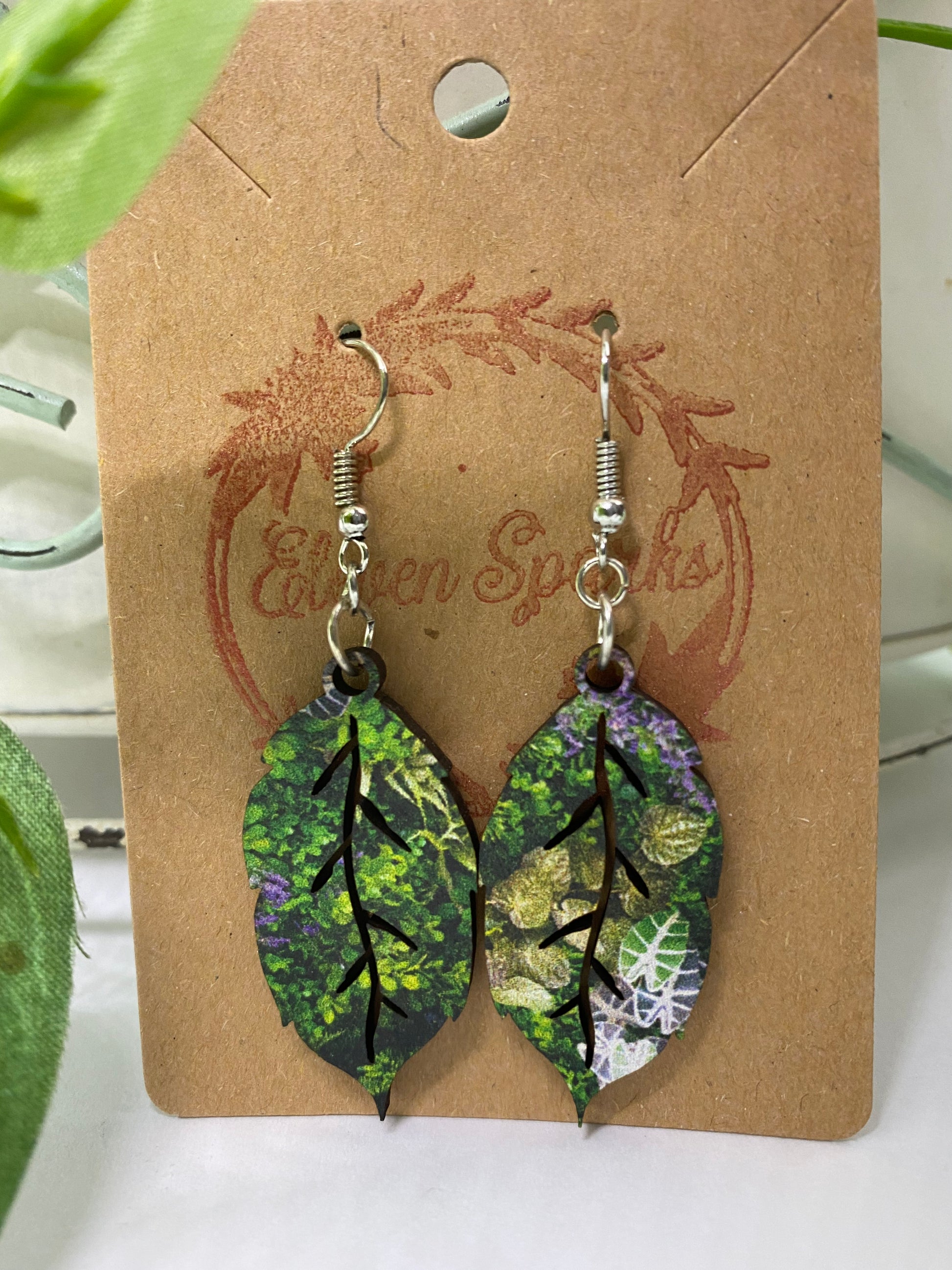 Laser cut from 3mm MDF wood, hand assembled with hypoallergenic findings. Each pair is unique and color pattern will vary